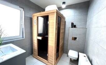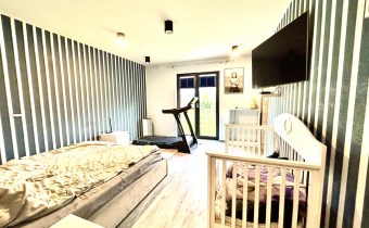 Na powierzchnię użytkową składa się przestronny salon połączony z aneksem kuchennym i wyjściem na taras i do ogrodu, spiżarnia, pomieszczenie gospodarcze, sypiania główna z garderobą dodatkowo 3 pokoje z czego jeden z prywatną łazienką i sauną, oraz przestronna łazienka z wanną i natryskiem.