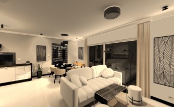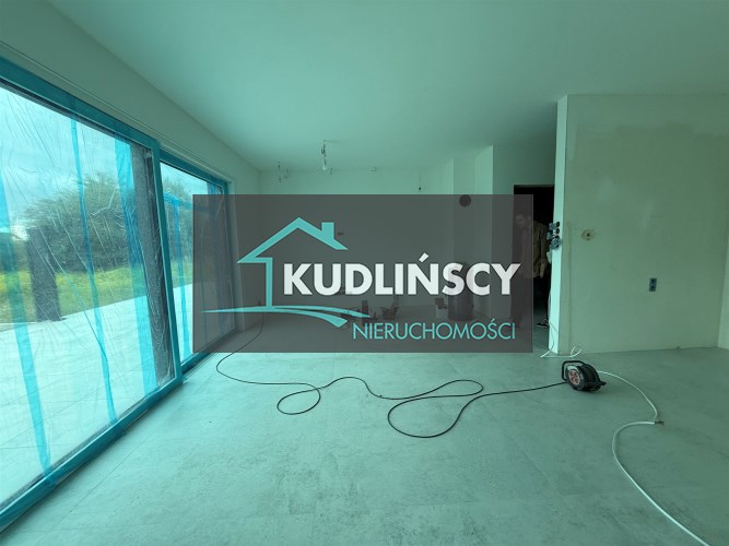 salon połączony z aneksem kuchennym, wyjście na duży taras, wc , z holu przejście do garażu.