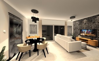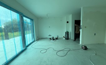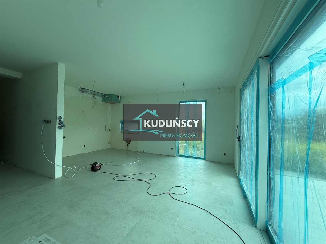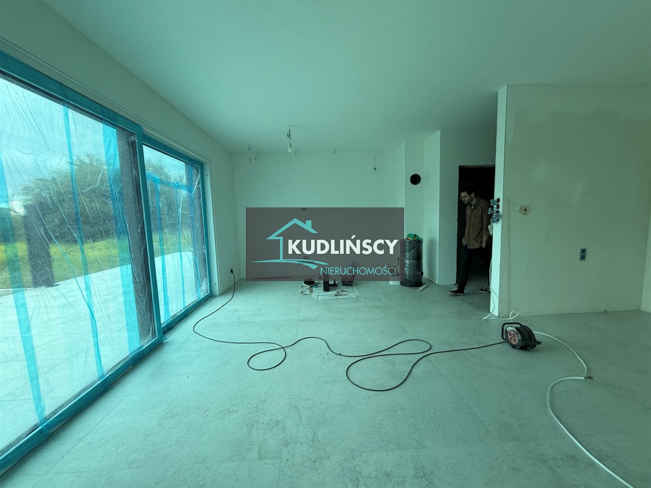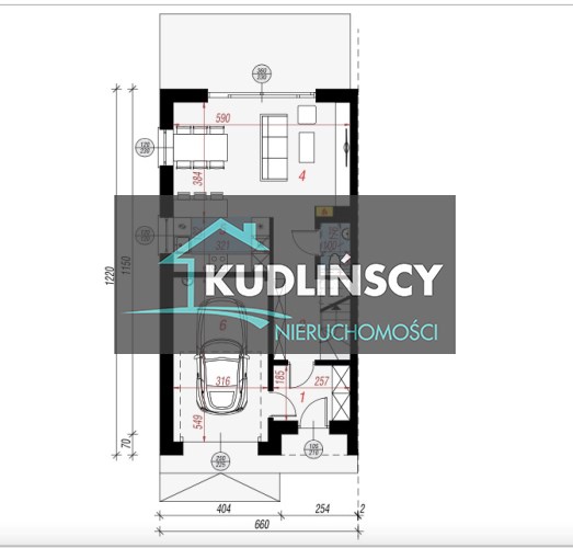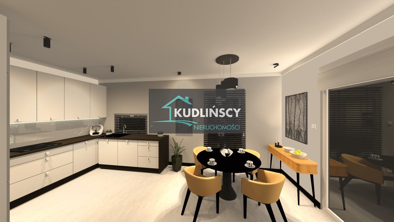 salon połączony z aneksem kuchennym, wyjście na duży taras, wc , z holu przejście do garażu.