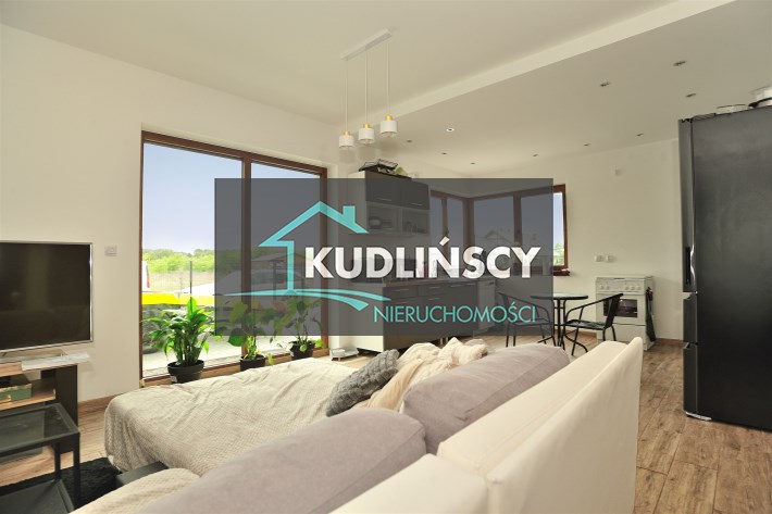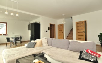 Przestronny salon dzienny z aneksem kuchennym, wyjściem na taras oraz kotłownię, łazienkę,