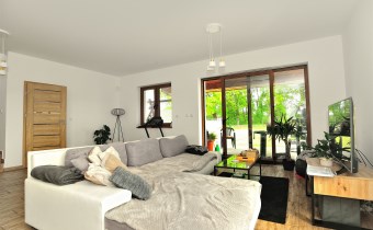 Sąsiedztwo jest spokojne, okolica bezpieczna a widok lasu z tarasu kojący i bezcenny.