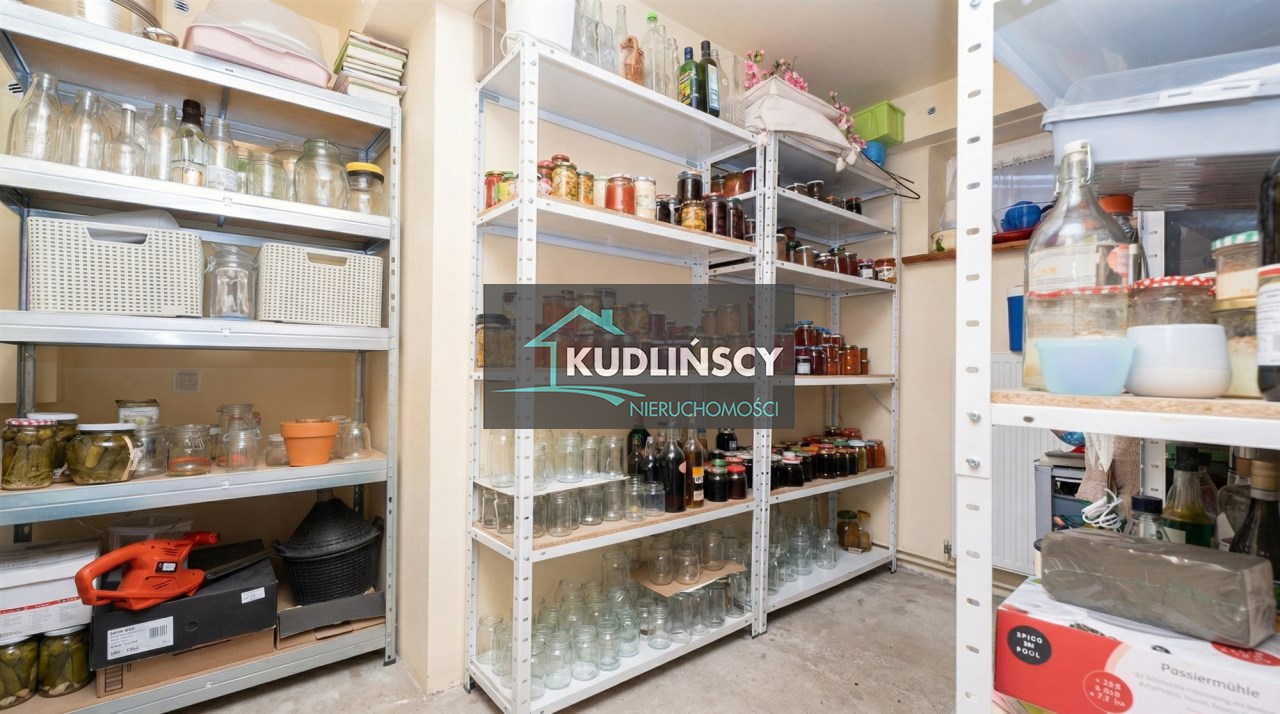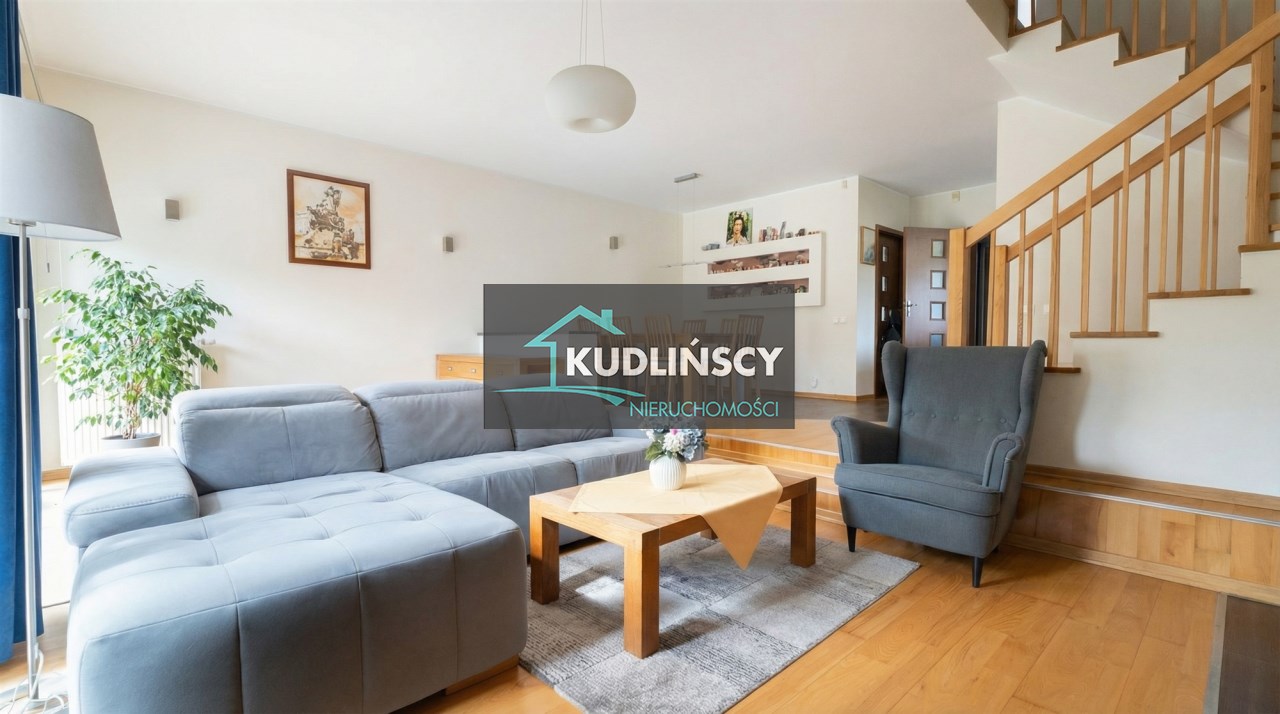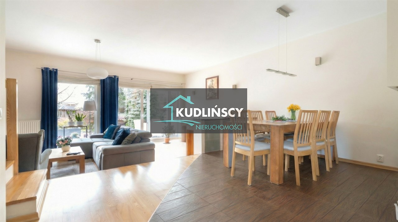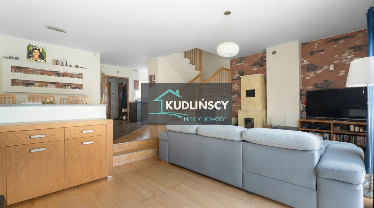 Parter to duży salon z otwartą kuchnia, podzielony na dwie strefy. Strefę kuchenno -jadalnianą i wypoczynkową. Kuchnia z oknem w jasnej zabudowie , w jadalni duży stół z krzesłami. Strefa wypoczynkowa z panoramicznymi przesuwnymi oknami skąd jest wyjście na duży taras i słoneczny ogród. W salonie właściciele , zamiast kominka wstawili piec kaflowy. Na tym poziomie znajduje się pokój (gabinet ) o powierzchni ponad 12 m kw oraz toaleta. Tu też znajdują się schody prowadzące na piętro pierwsze oraz na poziom -1. Piętro pierwsze to trzy sypialnie, garderoba oraz łazienka z oknem i z dużym prysznicem Dzięki usytuowaniu okien, pokoje są dobrze doświetlone a zarazem bardzo ustawne. W dwóch sypialniach balkony. Nad piętrem jest poddasze służące do przechowywania. Poziom -1 to duży garaż o powierzchni ponad 25 m oraz dwa dodatkowe pomieszczenia spełniające funkcje pralni i piwnicy.