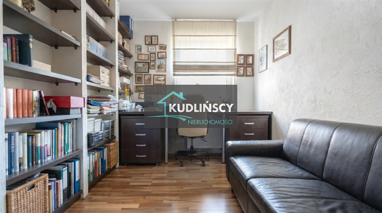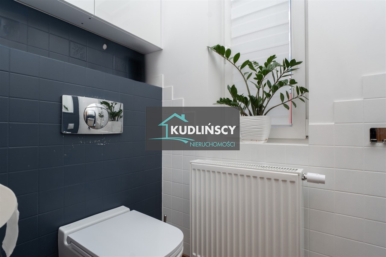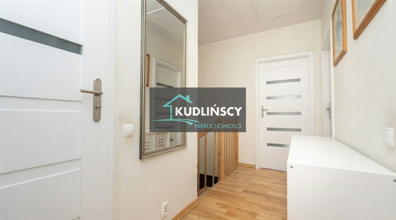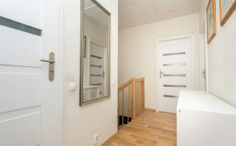 Parter to duży salon z otwartą kuchnia, podzielony na dwie strefy. Strefę kuchenno -jadalnianą i wypoczynkową. Kuchnia z oknem w jasnej zabudowie , w jadalni duży stół z krzesłami. Strefa wypoczynkowa z panoramicznymi przesuwnymi oknami skąd jest wyjście na duży taras i słoneczny ogród. W salonie właściciele , zamiast kominka wstawili piec kaflowy. Na tym poziomie znajduje się pokój (gabinet ) o powierzchni ponad 12 m kw oraz toaleta. Tu też znajdują się schody prowadzące na piętro pierwsze oraz na poziom -1. Piętro pierwsze to trzy sypialnie, garderoba oraz łazienka z oknem i z dużym prysznicem Dzięki usytuowaniu okien, pokoje są dobrze doświetlone a zarazem bardzo ustawne. W dwóch sypialniach balkony. Nad piętrem jest poddasze służące do przechowywania. Poziom -1 to duży garaż o powierzchni ponad 25 m oraz dwa dodatkowe pomieszczenia spełniające funkcje pralni i piwnicy.