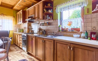 W pełni zagospodarowana przestrzeń różnorodnymi drzewami, krzewami i kwiatami, tworzy kameralny, zielony azyl. Oprócz głównego domu znajduje się tu również: