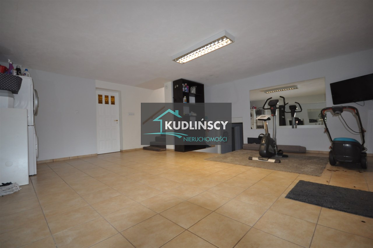 Na przedłużeniu garażu znajdują się duże pomieszczenia, które mogą pełnić funkcję siłowni lub zostać zaadaptowane na inne cele. Dojazd do domu jest możliwy drogą asfaltową. Na posesji znajduje się również taras oraz niewielki ogród.