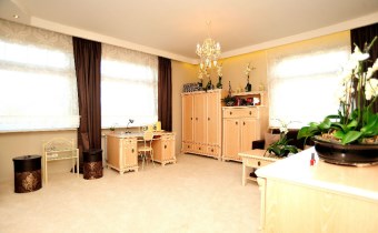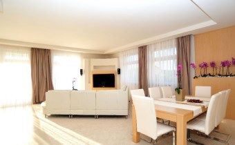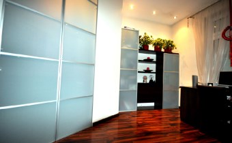 3 pokoje: 2 duże 21m2 i 30m2, pełniące funkcje sypialni oraz pokoju dziecięcego, pokój mniejszy 16m2 to stanowisko komputerowe garderoba (szafa komandor). 2 łazienki w jasnej gustownej glazurze i terakocie: duża 14m2 - w niej: wanna narożna z hydromasażem, ekskluzywna kabina prysznicowa z opcją sauny, wc, bidet i umywalka. Łazienka dla gości 4,5m2 z kabiną prysznicową, wc, bidet, umywalka.