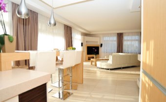 Na powierzchnię 218 m2 składają się 3 duże pokoje, salon połączony z kuchnią w formie aneksu, 2 łazienki, wiatrołap, hol oraz pralnia.