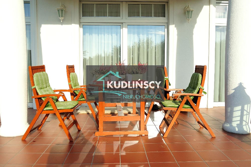 Dom pięknie położony wśród nowo wybudowanych rezydencji, uroku dodają filary od frontu oraz ogrodu. Bezpośredni kontakt z niewielkim jeziorkiem do dyspozycji kilku właścicieli sąsiadujących posesji wpływa na atrakcyjność oferty. Dla bezpieczeństwa zainstalowany został system alarmowy na czujki, żaluzje antywłamaniowe z alarmem oraz bariery anty napadowe na podczerwień. Dach wielospadowy pokryty dachówką "karpiówką".