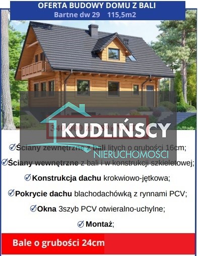 Do zakupu dom z bali drewnianych do wybudowania na własnej działce lub działce do nabycia.