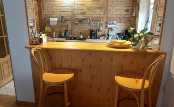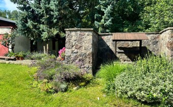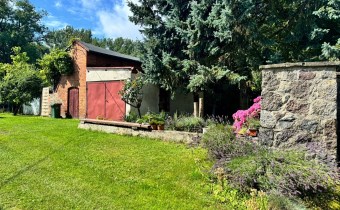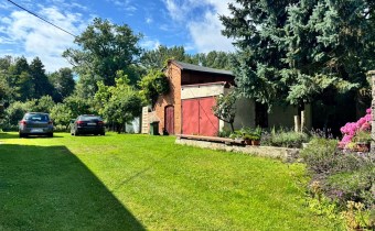 Pęzino miejscowość położona tylko 10 min od Stargardu, 7 km od Marianowa, 40 min od Szczecina. Dom wolnostojący, piękna duża działka, całość tworzyła  gospodarstwo rolne. Niezmiernie rzadko można spotkać taką nieruchomość, gdzie można odpoczywać w otoczeniu przyrody, słuchać ptaków i szumu rzeczki a jednocześnie wyjść " za próg" i mieć sklep, przystanek, pocztę szkołę itd. Dom pierwotnie jednorodzinny na potrzeby mieszkańców został  przerobiony tak , aby służył dwóm rodzinom. I tak: są dwa niezależne wejścia. Jedna część po remoncie, druga nie.  Część wyremontowana to : przedpokój, salon, jadalnia i otwarta kuchnia. Na tym poziomie jest jeszcze łazienka. Schodami idziemy na poddasze użytkowe gdzie jest pokój, sypialnia, garderoba  i przedpokój z zabudową z szaf typu Komandor. W salonie jest kominek z rozprowadzonym płaszczem wodnym. Parter to powierzchnia ok 50 m2, poddasze podobnie. Drugą cześć domu tworzy " lustrzane odbicie" . Ta część nie została wyremontowana, co pozwala nowym właścicielom zrobić je wg własnych pomysłów.  Na dachu jest blacha, elewacja dobrze utrzymana, okna PCV, tylko w części do remontu zostały dwa na poddaszu, które jeszcze nie zostały wymienione.  Tutaj mamy ogrzewanie piecem na węgiel. Na posesji jest garaż jednostanowiskowy, oraz 2 budynki gospodarcze. Dużą zaletą jest jeden z budynków gospodarczych, jest on wolnostojący, składa się z kilku pomieszczeń i jest to doskonała rzecz, do prowadzenia np. działalności rzemieślniczej. Obok stoi szklarnia i jeszcze jeden budynek służący gospodarstwu. Liczne nasadzenia, drzewa ozdobne oddzielają  mieszkańców od ulicy, drzewa owocowe pozwolą zapełnić spiżarnię, winorośla, maliny, jeżyny itd. Działka ma kształt nieregularny w jednej części zbliża się do rzeczki. Na chwilę obecną teren pomiędzy działką a rzeką należy do gminy. Można go wydzierżawić, co da możliwość skorzystania z tego sąsiedztwa.  Obok jest średniowieczny zamek ( rozbudowany w XIX wieku) , na jego dziedzińcu organizowane są co roku imprezy " rycerskie". Otoczenie bardzo ładne, niskie koszty utrzymania.  Można przywrócić pierwotny kształt pomieszczeń, czyli połączyć te dwie części wstawiając tylko drzwi.