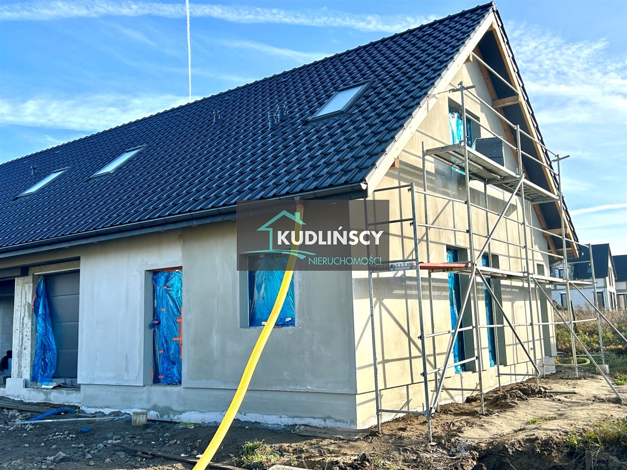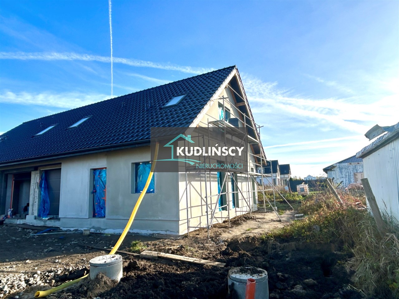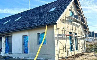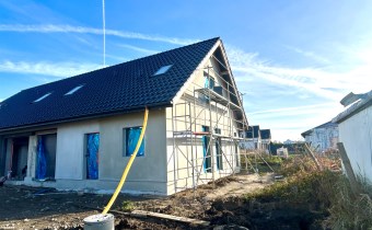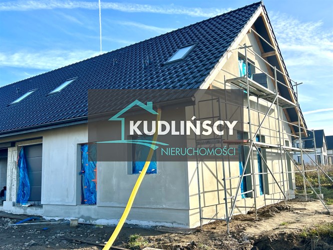 Dom jednorodzinny dwulokalowy w zabudowie bliźniaczej, na na działce 425 m2, o powierzchni użytkowej 130m2 powierzchni użytkowej. W projekcie podwójna ściana z dylatacją między sąsiadami co jest wymagane w zabudowie bliźniaczej a czego nikt z deweloperów nie stosuje w przypadku budynków dwulokalowych. Dostępne media: prąd, woda z wodociągu miejskiego, pompa ciepła, szambo.  Budynki w stanie deweloperskim z elewacją i mediami doprowadzonymi do budynku.  Budynki w tracie wykańczania, do wydania w I kwartale 2026 roku
