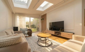 - przestronny salon ze świetlikiem dzięki czemu przestrzeń jest pięknie doświetlona