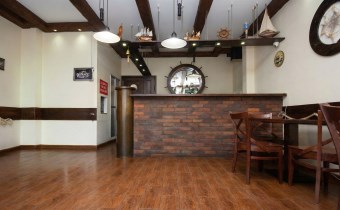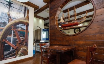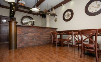 Tawerna wykończona została w nadmorskim stylu, z dominującymi elementami drewna w odcieniach ciemnego koloru, które podkreślają żeglarski klimat wnętrza i tworzą spójną, ciepłą atmosferę. Restauracja może jednocześnie przyjąć około 30 gości, a w sezonie letnim dodatkowe 8 miejsc dostępnych jest w ogródku zewnętrznym.
