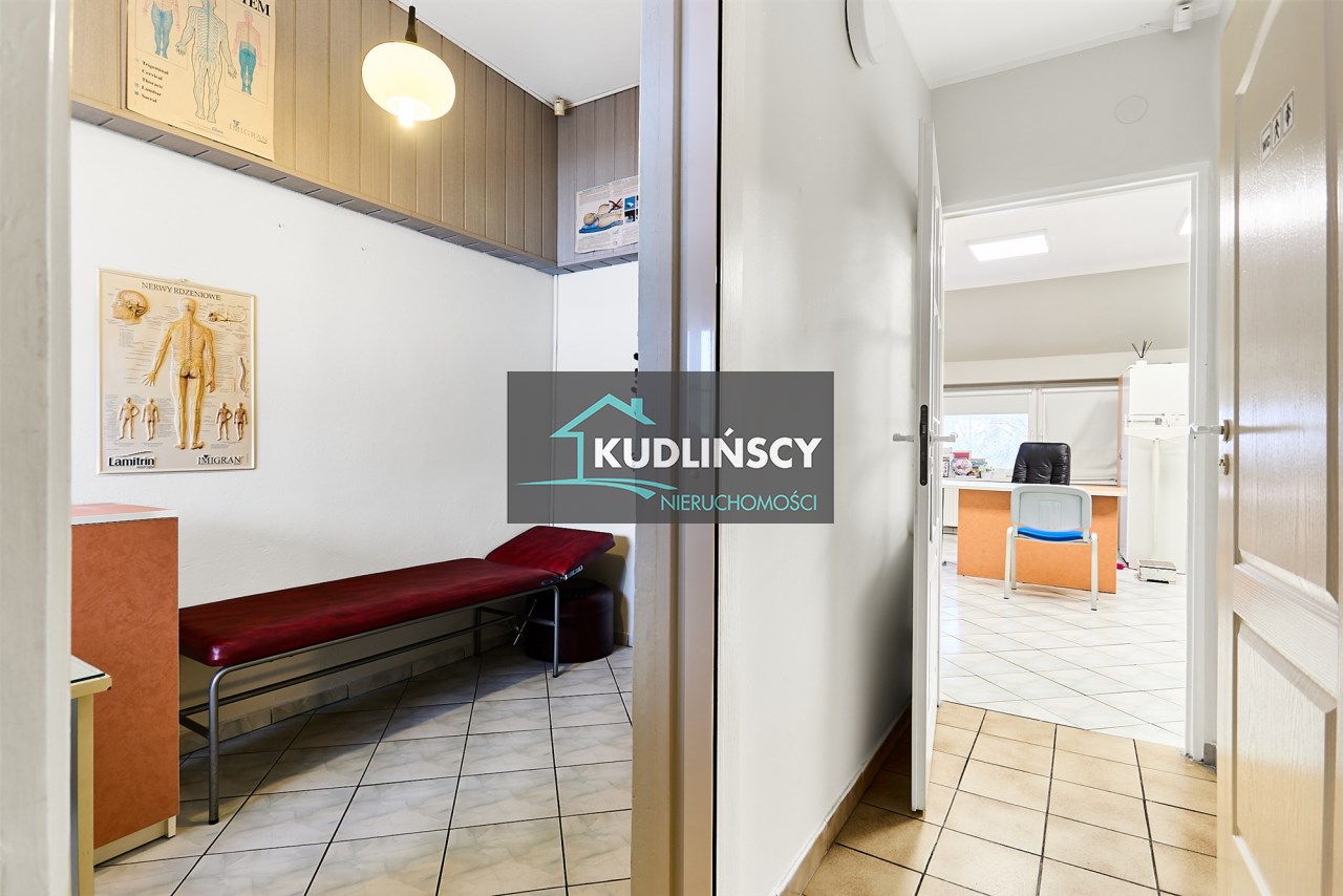 Łącznie kilka niezależnych pomieszczeń, które można wykorzystać jako gabinety, biura lub sale usługowe.