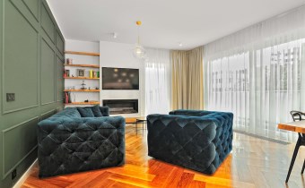 • Przestronny salon z bio kominkiem i wyjściem na taras