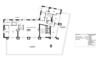 W części prywatnej sypialnia z dodatkową, przeszkloną łazienką oraz garderobą, a także pomieszczenie gospodarcze. Apartament zajmuje całe piętro na ostatniej kondygnacji budynku w świetnej lokalizacji (bliskość sklepów, szkół, galerii handlowych) z ponadprzeciętnym tarasem, oraz oknami tarasowymi na dwóch bokach budynku, na pozostałych okna i balkony.