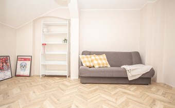 Na podłodze panele, ściany wygładzone, w łazience glazura i terakota. Kamienica odrestaurowana z ładną klatką schodową.