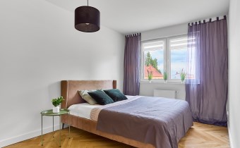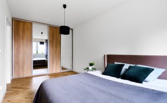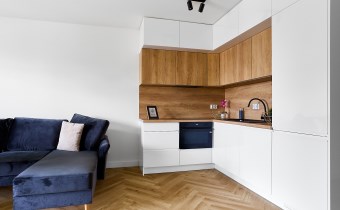 Wnętrze zostało urządzone z dużą starannością, przy użyciu materiałów wysokiej jakości. Styl minimalistyczny, naturalna kolorystyka i funkcjonalne rozwiązania tworzą harmonijną, przyjazną przestrzeń.