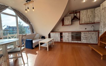 •     Poziom I: przestronny salon z aneksem kuchennym, sypialnia, łazienka z WC