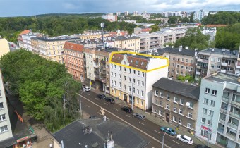 Nieinwazyjne skosy, prawidłowo wykonana adaptacja poddasza w postaci izolacji dachu. W kamienicy wymieniony dach, piony wodno-kanalizacyjne.