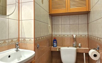 Składa się z trzech rozkładowych pokoi, oddzielnej kuchni z oknem, łazienki z wanną, WC z umywalką oraz dwóch korytarzy. Z salonu wyjście na balkon. Ogrzewanie i ciepła woda z sieci miejskiej. Mieszkanie słoneczne, środkowe. W pokojach na podłodze panele. W łazience, WC i kuchni kafle. Ściany gładzone malowane. Okna PCV. Do mieszkania przynależy piwnica. Dodatkowo w budynku jest dostępna suszarnia oraz wózkowania.