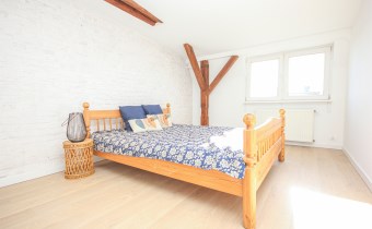 - duża sypialnia z podwójnym łóżkiem i miejscem na szafę