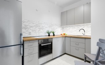• Oddzielna kuchnia: W pełni wyposażona  – idealne rozwiązanie dla tych, którzy nie lubią aneksów w salonie.