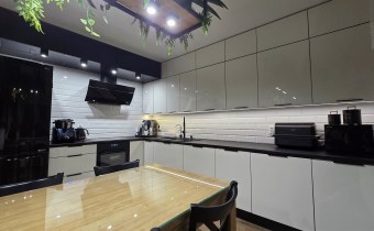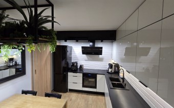 - oddzielnej kuchni (z pełnym nowoczesnym wyposażeniem w zmywarkę, piekarnik, płytę elektryczną, zabudowa na wymiar) istnieje możliwość otwarcia kuchni na salon