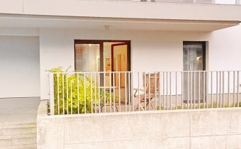 z bezpośrednim widokiem na morze, na parterze apartamentowca Gardenia Seaside II, który jest położony bezpośrednio na wydmie.