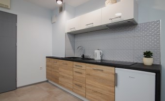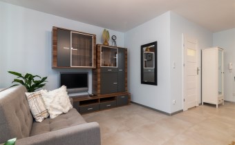 Mieszkanie składa się z pokoju dziennego z aneksem kuchennym oraz łazienki. Pełne umeblowanie plus sprzęty AGD (pralka, lodówka, pochłaniacz, płyta elektryczna, piekarnik) oraz telewizor.
