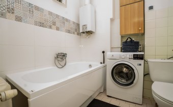 Mieszkanie składa się z 2 pokoi, kuchni, łazienki oraz przedpokoju. Dwa niezależne pokoje, w każdym rozkładana kanapa. Kuchnia w nowej zabudowie, kuchenka  gazowa, zmywarka. W kuchni stół z krzesłami. Łazienka z wanną. Mieszkanie jest bardzo ciepłe, ogrzewanie miejskie (brak podzielników) w czynszu , w czynszu także zimna woda, śmieci. Dodatkowo płatny prąd