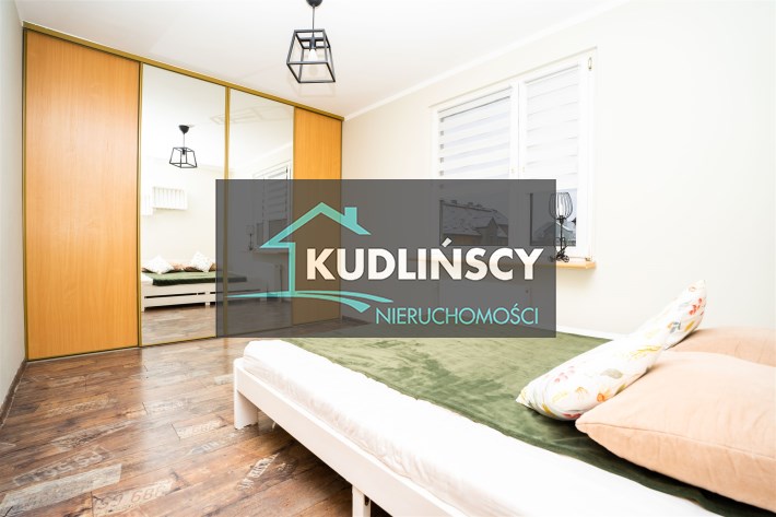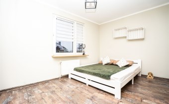 sypialnia wyposażona w łóżko o wymiarach 160 cm oraz pojemną szafę w zabudowie typu Komandor,