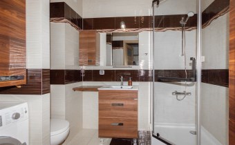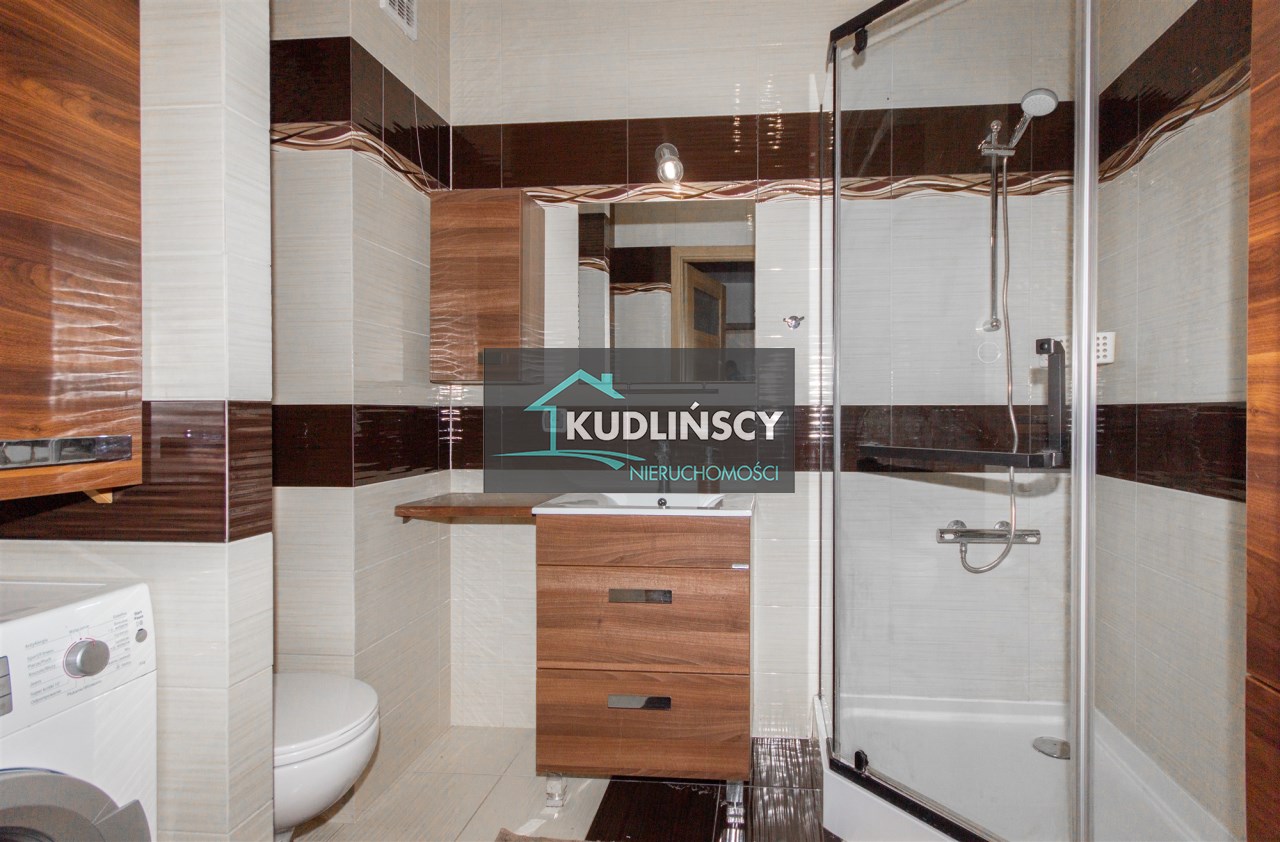 - łazienka z kabiną prysznicową i pralką,