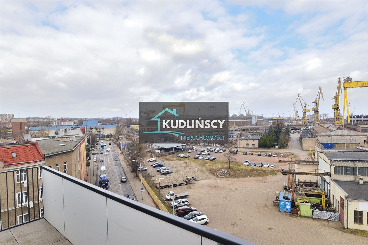 Oferta najmu komfortowej, nowej kawalerki z tarasem , z widokiem na Odrę i zabudowania stoczni.