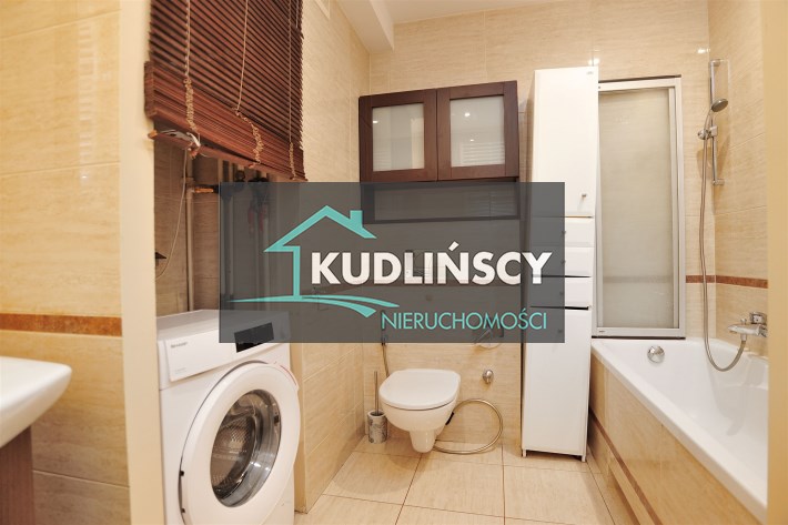 - Łazienka (5m2): wanna z zabudową szklano-aluminiową umożliwiającą jednoczesne korzystanie z prysznica, deszczownica HansGrohe. Pralka automatyczna. Umywalka z lustrem i szafką podumywalkową. WC kompaktowe z prysznicem bidetowym.