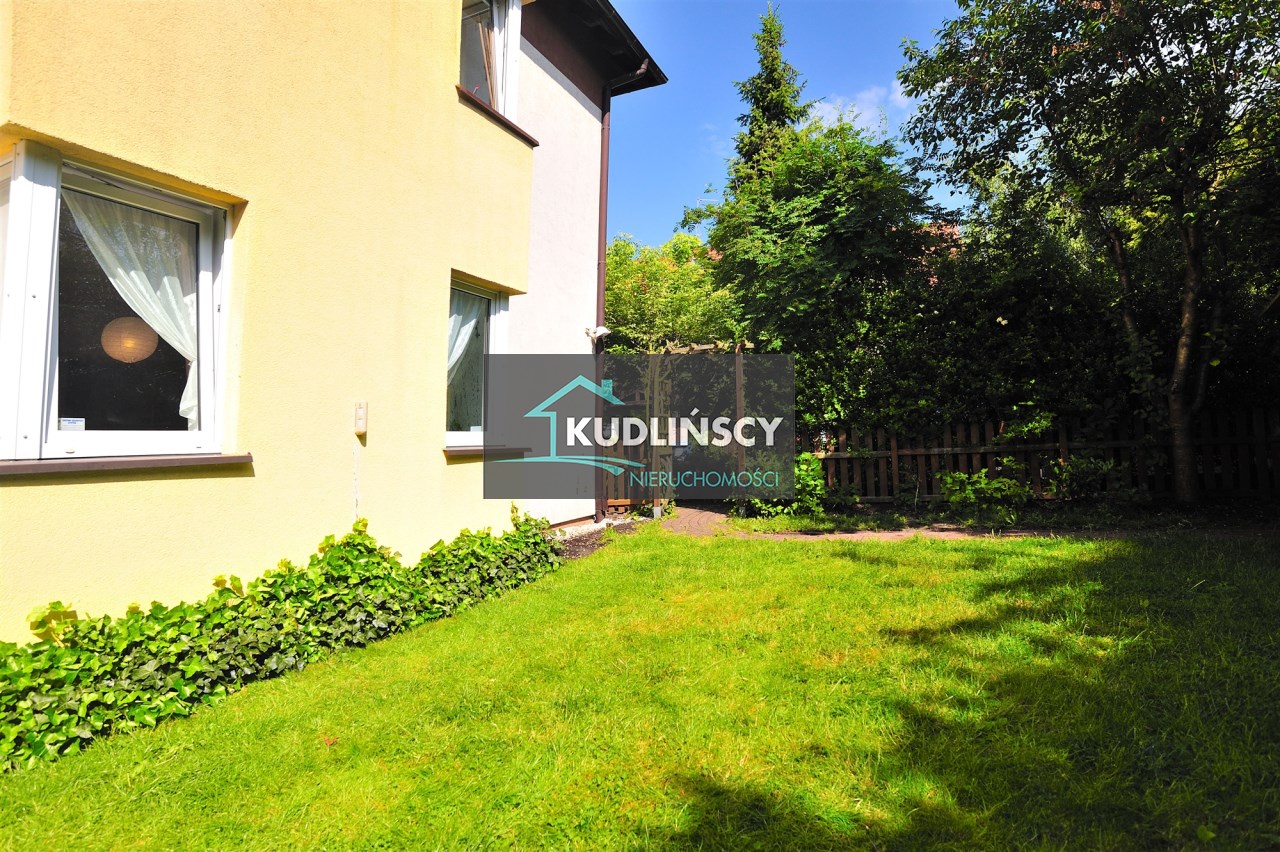 Trawnik, huśtawki dla 2x dzieci, liczne nasadzenia roślin, krzewy i drzewa owocowe, żywopłot, mini ogródek warzywny. Całość w pełni zagospodarowane. Ponadto w ogrodzie drewutnia z oświetleniem z przeznaczeniem na rowery, kosiarkę do trawy i grilla.